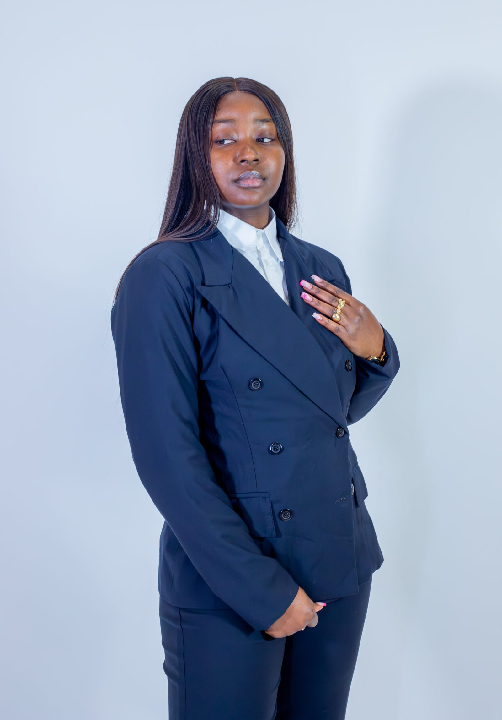 Sobre, affirmé et puissamment structuré, Commandante Adira célèbre la femme qui avance avec assurance et calme stratégique.