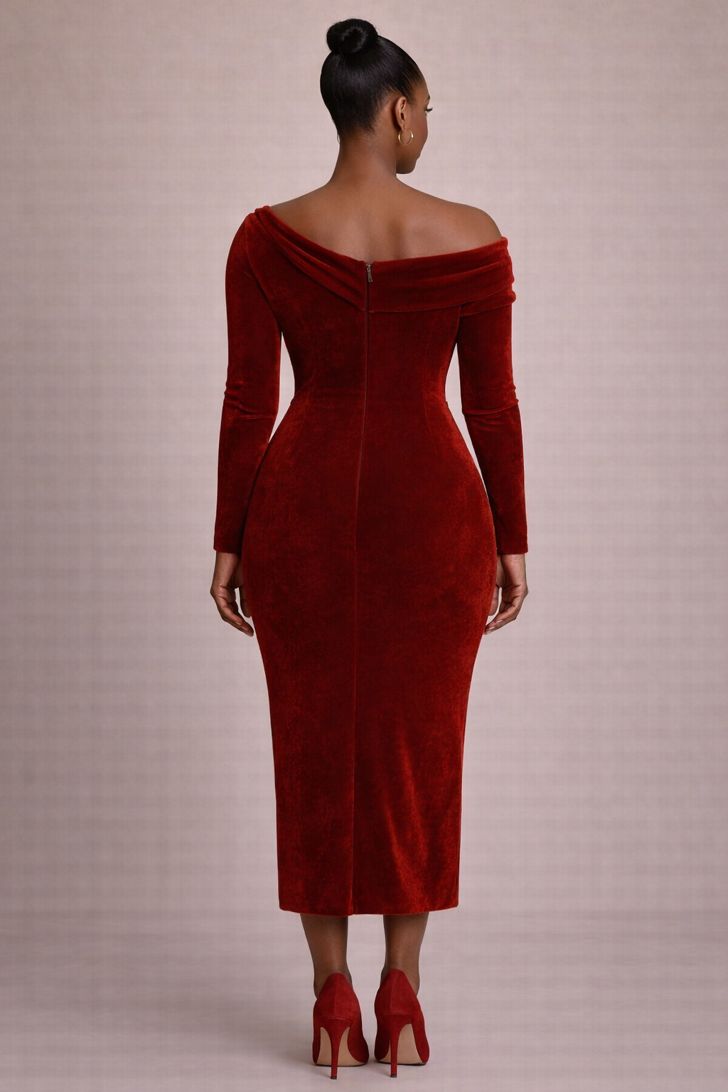 Robe Midi Asymétrique en Velours de Soie – Reine Vashti| Taille: No selection | XS, S, M, L, XL, XXL, 3XL |